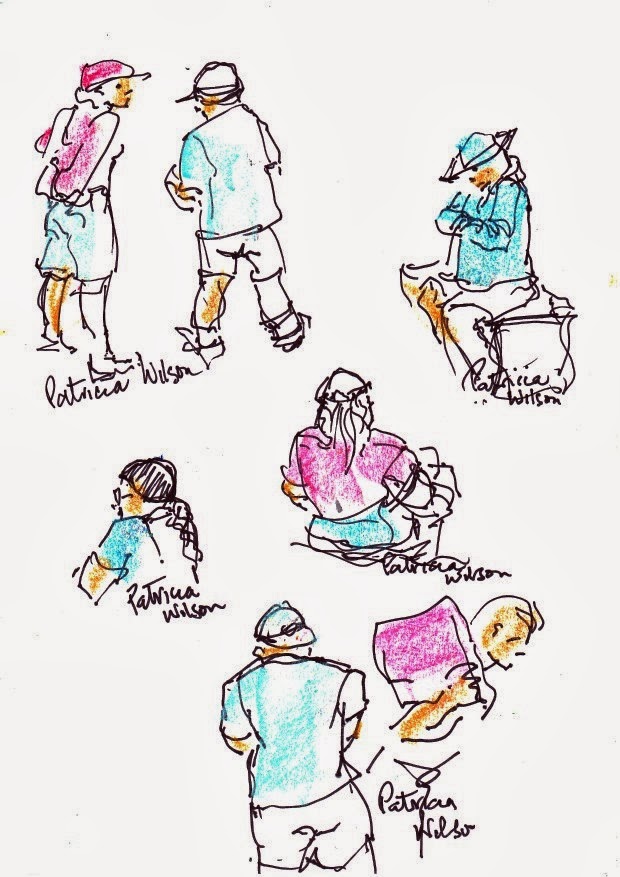 Almost two weeks ago, we were down at the water's edge to draw the 2014 Te Kupenga Stone Sculpture Symposium. This basically is stone carvers from around the world getting together in one public place here in New Plymouth to make a bunch of work in front of an audience. I drew Nigel Scalon working away on his first cuts. I saw him again yesterday working like crazy to finish up. He had one day left before all work was stopped, tools removed and the public is allowed to freely walk around to see (and touch) the different pieces. After another week, there is an art auction at the site.